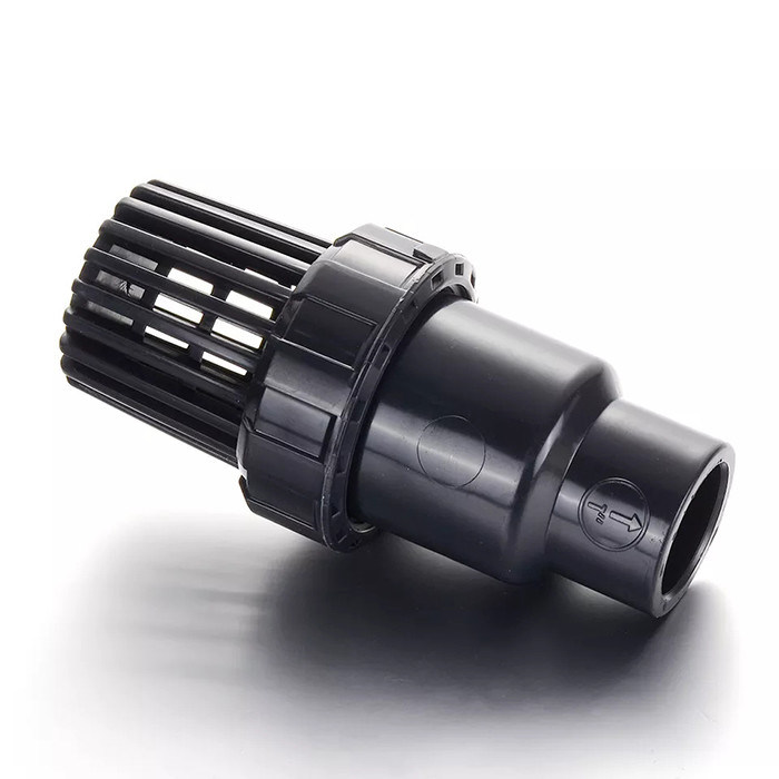 La valvola del fondo del PVC, anche conosciuta come la valvola di ritenuta, è una valvola piana a bassa pressione. La sua funzione è di assicurarsi che i flussi liquidi in una direzione nel tubo d'aspirazione, di modo che la pompa può funzionare normalmente. Quando la pompa smette di funzionare intermittentemente per un breve periodo, il liquido non può ritornare al carro armato di fonte d'acqua. Assicuri che il tubo d'aspirazione sia riempito di liquido per facilitare l'inizio della pompa.